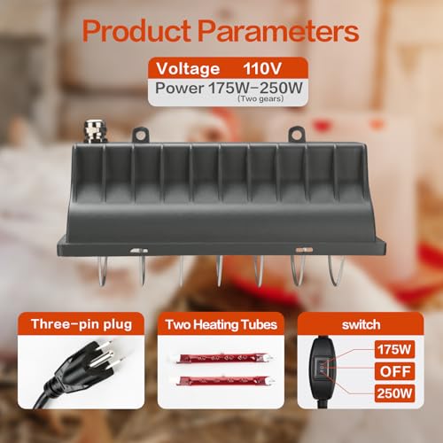 Powerful Heating for a Cozy Animal Haven: This 250W chicken coop heater is specifically designed for small animals, providing stable and powerful heating. It is especially suitable for creating a warm environment for newborns, such as chicks, ducklings, puppies, and kittens, ensuring they remain safe and comfortable through the cold winter months, promoting their healthy growth