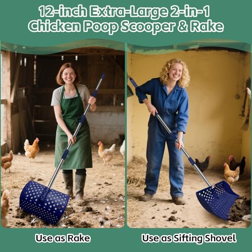 ?Innovative 2-in-1 Chicken Poop Scooper & Rake — Patent Pending!?? Effortlessly clean your coop with HUMVMV’s ergonomic 2-in-1 pooper scooper design. One-handed operation means no bending or back strain. The rake teeth gather waste and feathers fast, while the sifting scooper separates bedding from debris — no need for multiple tools. A must-have for every chicken keeper!