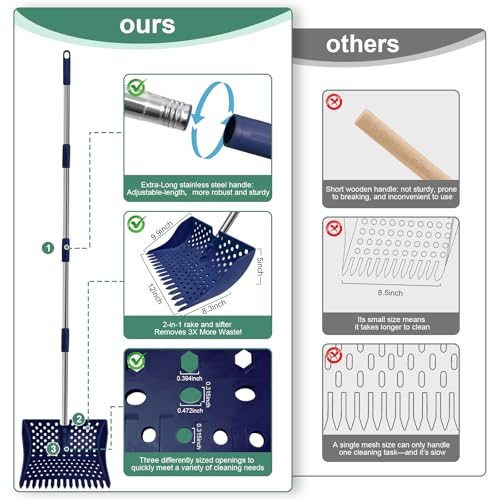 ?A Versatile Multi-Sifter Shovel — Great for Farms, Beaches & More?? Don’t limit yourself to chicken coops! This versatile Litter Scooper is ideal for cleaning up after goats, rabbits, dogs, cats, pigs, ponies, and other small livestock. Plus, it doubles as a beach sand sifter to effortlessly separate shells from sand. One tool, endless uses — the only scooper you’ll ever need!