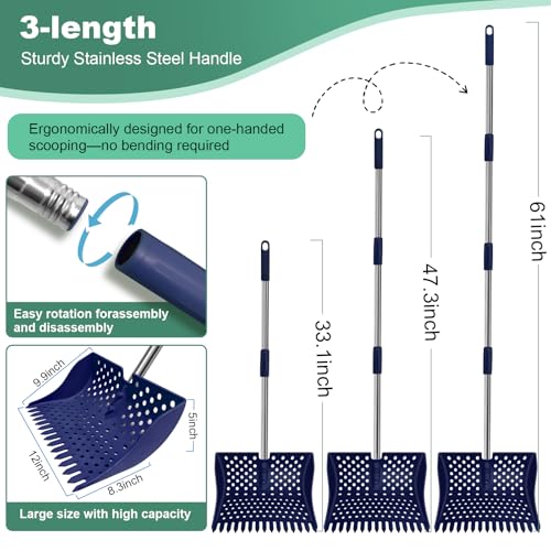 ?Adjustable 4-in-1 Stainless Steel Handle — Custom Fit for Every User?? Switch instantly between four lengths — 20", 33.1", 47.3", and 61" — with a secure twist-lock. Perfect for all heights and coop sizes, this versatile chicken coop accessory makes cleaning easier and reduces fatigue, whether you’re working in tight corners or open spaces.