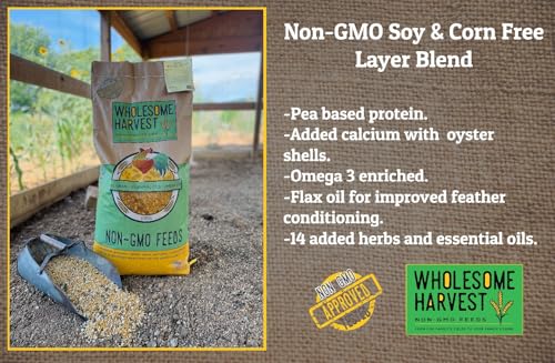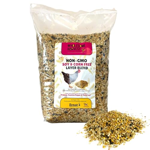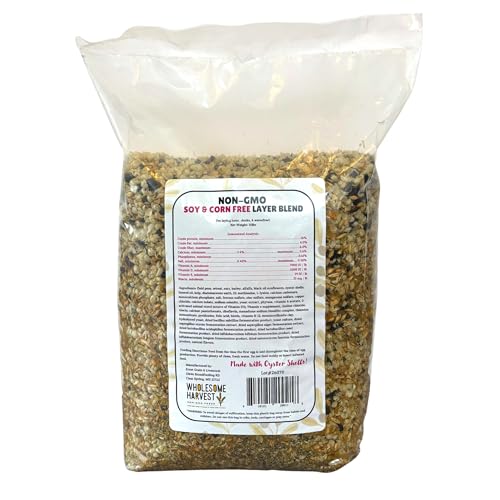 NUTRITION AND VITALITY: Our chicken layer feed blend is crafted with a wholesome mix of non-GMO soy-free and corn-free grains, including wheat, oats, linseed oil, kelp, barley, essential oils, herbs, and oyster shell for chickens. This balanced blend supports the health and egg-laying yield of chickens and ducks, ensuring they receive optimal nutrition for thriving and producing high-quality eggs.